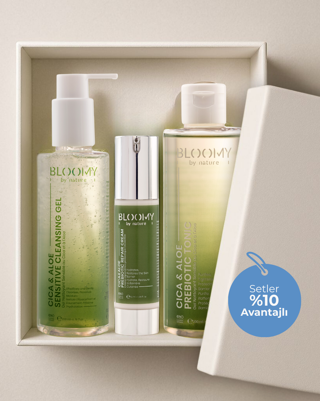 Cica & Aloe Prebiyotik Tonik , cilt florasını dengeler, nemlendirici sağlar ve sonraki bakımın dağılmasını artırır.